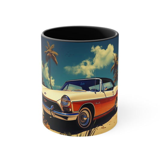 Desertwave Drive: Customized Dreamy Classic Car and Seaside Vista Accent Coffee Mug - Elegantly Rendered in 8K Detail (11oz Mugs)