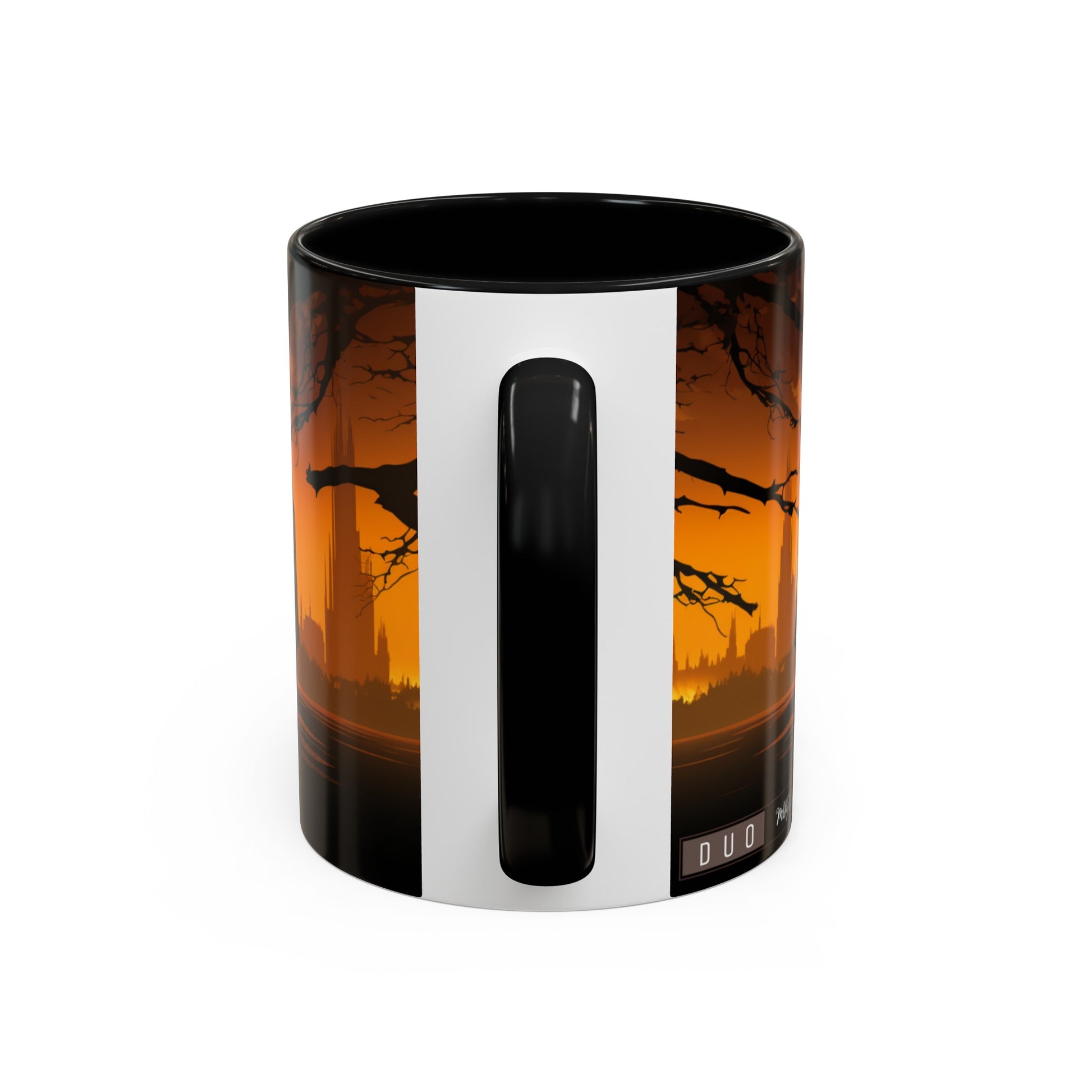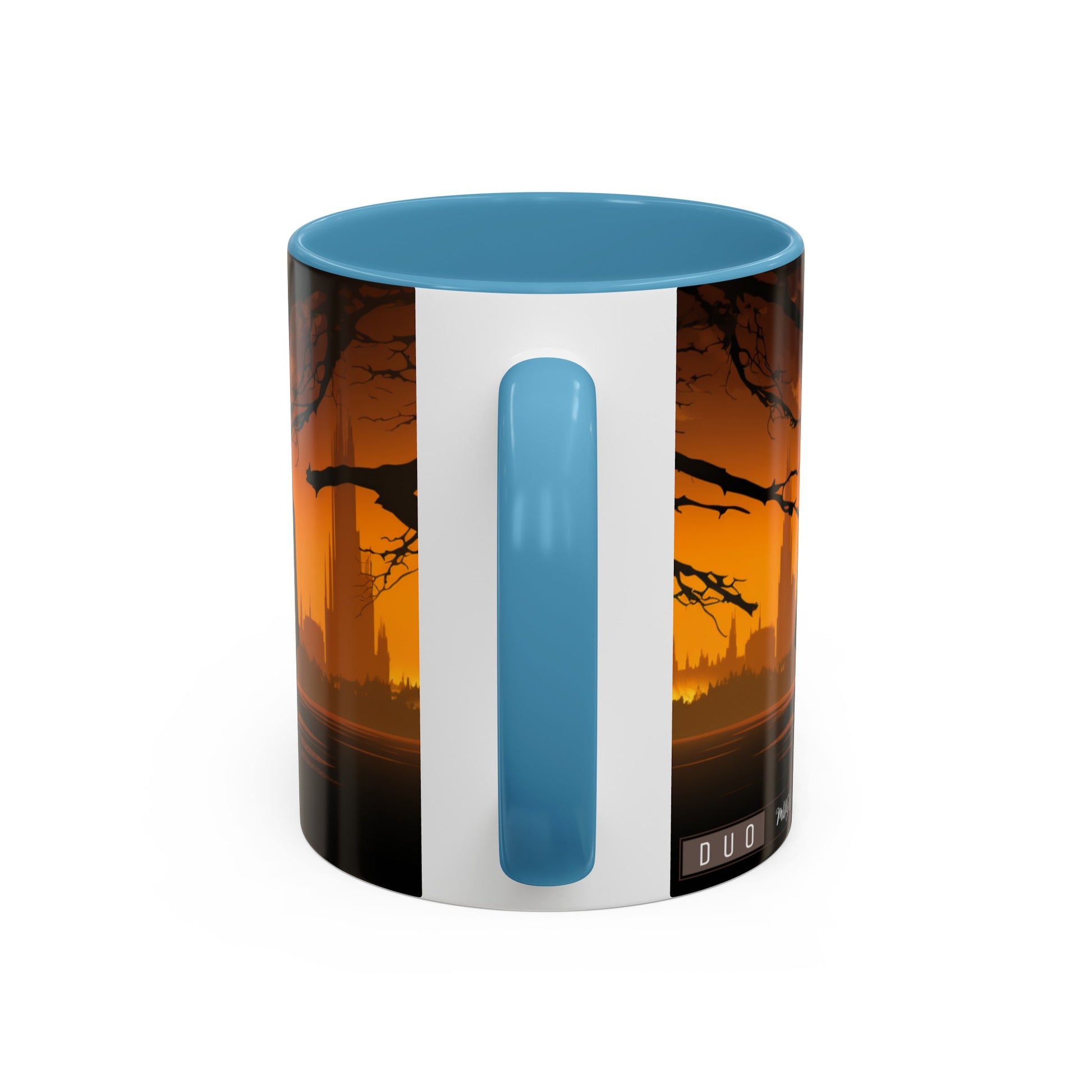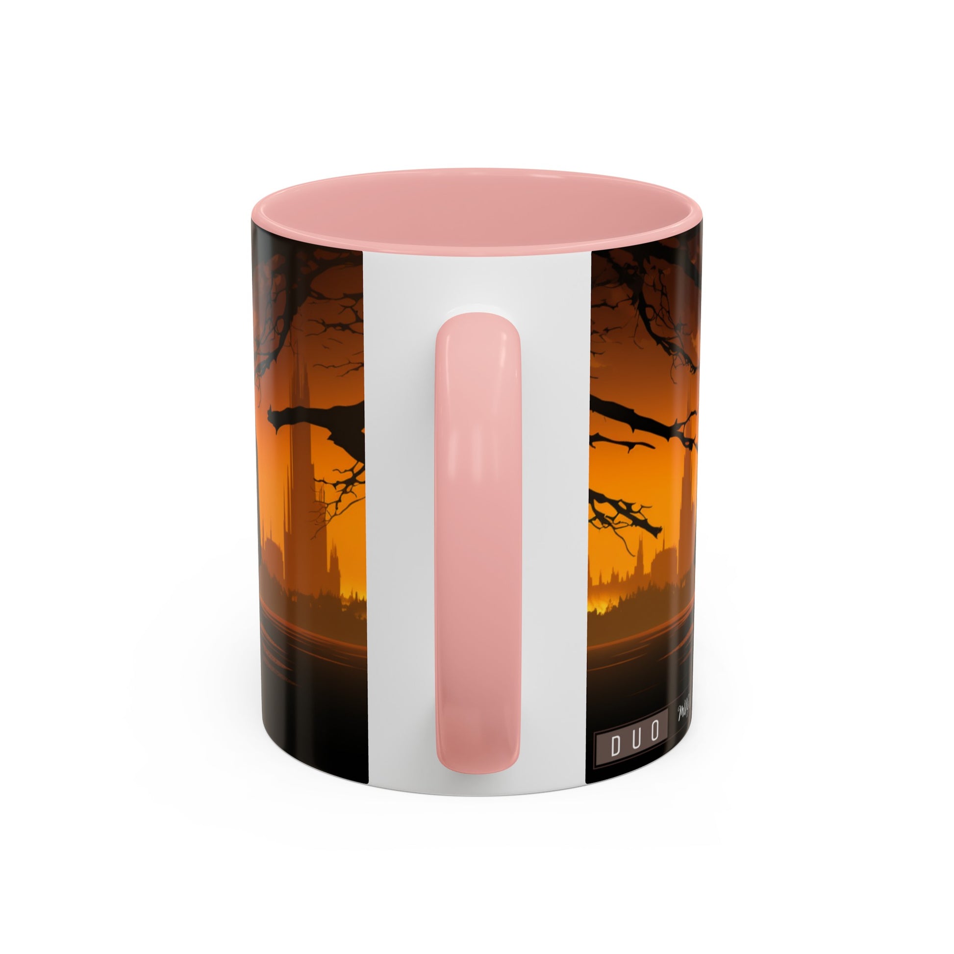 Add some color to your routine with this two-tone, custom accent coffee mug. This 11oz mug features an accented C-Handle that is comfortable to use, as well as an accented interior to add more contrast and character. With your design on this mug, you get an instant winner of a product.